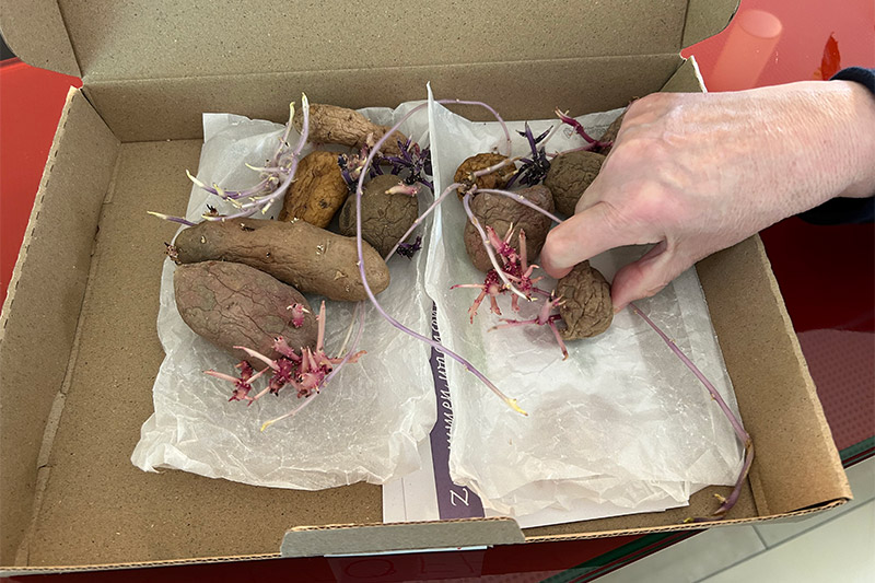 „Wir sind schon ganz gespannt, wie die Kartoffeln in diesem Jahr wachsen werden!“ Die Vorfreude bei der diesjährigen Pflanzaktion der Kartoffeln ist groß. Tatkräftig halfen die Bewohnerinnen des Lina-Oberbäumer-Hauses kurz nach Pfingsten mit, die Kartoffeln der Kartoffelaktionen in die Erde zu bringen. Passend zum Thema gab es eine Kartoffelrunde mit einem Quiz.