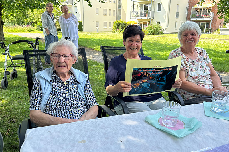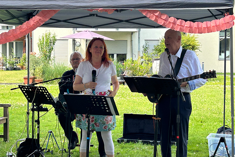 Die Musikerin und zwei Musiker haben bereits jahrelange Erfahrung in der Unterhaltung älterer Menschen und begeisterten das Publikum mit ihren mitreißenden Songs. Die bekannten Interpretinnen und Interpreten aus der Jugendzeit der Zuhörenden schafften es, die Sommerfest-Gäste auf eine musikalische Zeitreise mitzunehmen und Erinnerungen an vergangene Zeiten zu wecken. Mit einer vielfältigen Auswahl an Hits aus den goldenen Jahren der Musikgeschichte versprühten das „Trio Memories“ auch diesmal gute Laune. Titel wie „Rote Lippen soll man küssen“ oder „Seemann lass das Träumen“ trugen zu dem unvergesslichen Erlebnis bei.
