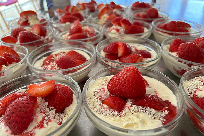 Das Eis war selbst gemacht und dazu gab es frische selbstgemachte Erdbeersoße und frische Erdbeeren. Alle Frauen waren begeistert und haben ihr Eis genossen.