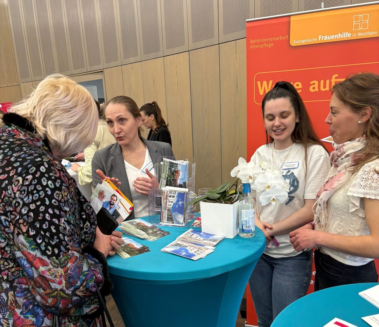Die Einrichtungen der Evangelischen Frauenhilfe in Westfalen (EFHiW) präsentierten sich auf der Soester Frauenmesse „Frauenpower – Deine Zukunft beginnt hier!“ in der Stadthalle Soest mit einem vielfältigen und engagierten Auftritt. Im Bereich „Beratungsstellen“ boten die Frauenberatung und das Frauenhaus umfassende Informationen und persönliche Ansprechpartnerinnen für Frauen in unterschiedlichen Lebenssituationen, in denen sie Beratung oder gar akuten Schutz benötigen. Ergänzt wurde das Angebot durch den Stand des Lina‑Oberbäumer‑Hauses, des Hanse‑Zentrums sowie des Soester Bildungs-Instituts für Pflegeberufe, die Einblicke in Pflegeberufe, Ausbildungsmöglichkeiten und berufliche Perspektiven gaben.