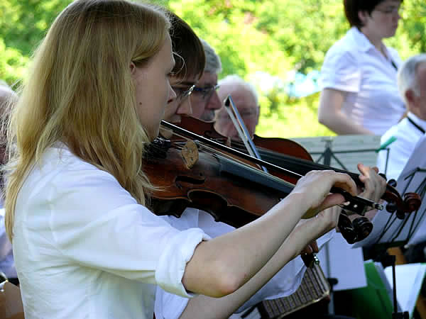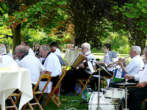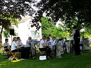 Das 2-stündige Musikprogramm durch das 16-köpfige Paderborner Salonorchester genossen alle bei Kaffee und Kuchen sowie Würstchen vom Grill.