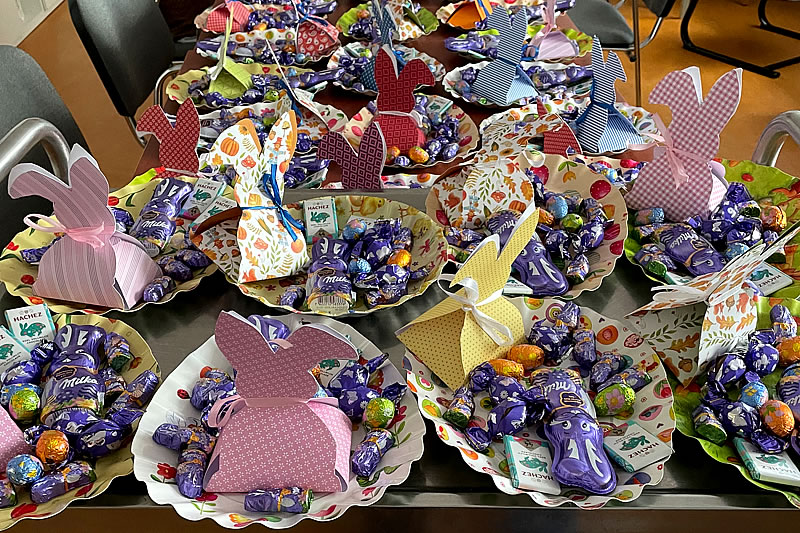 Ostereier und Osterhasen in allen Größen und Geschmacksrichtungen – so wurden die Osterteller angerichtet, die jede Bewohnerin des Soester Alten- und Pflegeheims Lina-Oberbäumer-Haus zu Ostern überreicht bekam.
