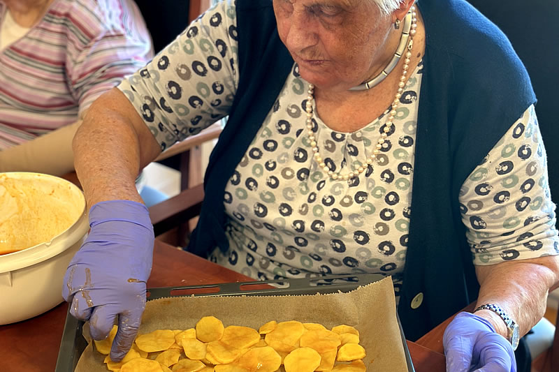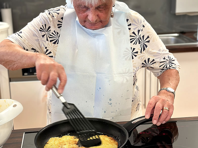 Selbstgemachte Chips, Kartoffelsuppe, Reibekuchen, Kartoffelpüree und Backkartoffeln – während der Kartoffelwoche gab es jeden Tag etwas anderes Leckeres auf allen Wohngruppen des Lina-Oberbäumer-Haus. Es wurde geschält, geputzt und geschnibbelt und dabei viel erzählt vom Alltag vergangener Tage.