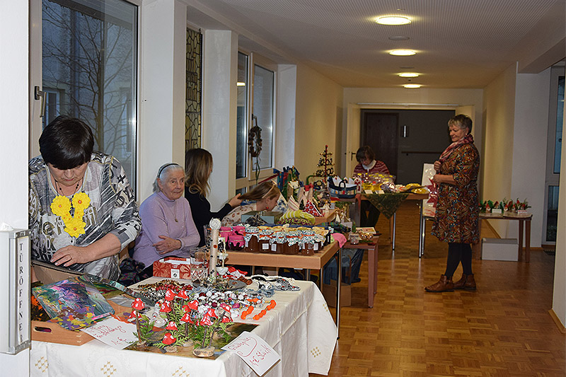 Kreatives wurde dargeboten, so z.B. gehäkelte Sachen vom Handarbeitscafe, selbst genähte Taschen, selbstgestrickte Socken, Babyschuhe, selbstgemachte Marmelade und Schmuck sowie Weihnachtsdeko.
