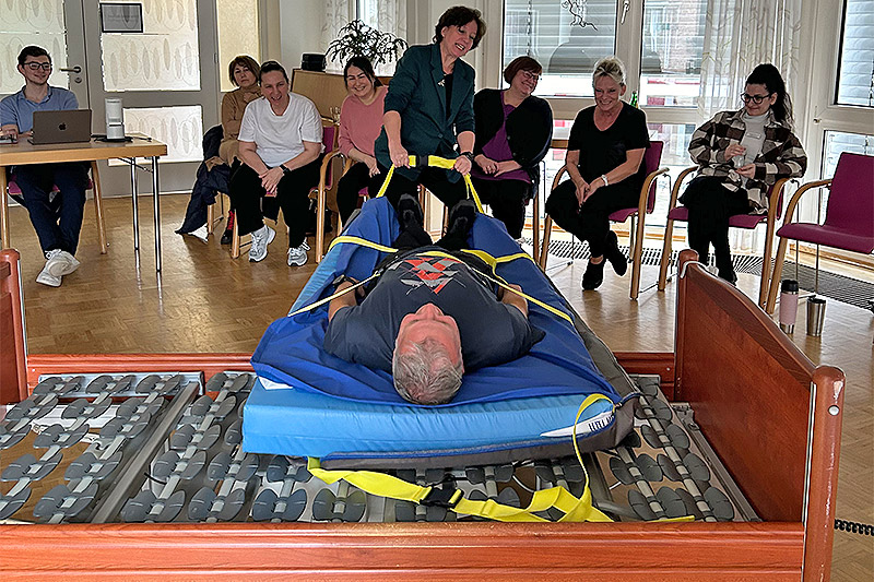 Im Brandfall muss ein Betriebsgebäude schnell geräumt werden. Alle Beschäftigten und zu Pflegenden müssen den Sammelplatz aufsuchen. Das wird in einer Evakuierungsübung trainiert. An vier Tagen erhielten Anfang Februar alle Mitarbeitenden des Soester Alten- und Pflegeheimes, Lina-Oberbäumer-Haus, eine Brandschutzschulung mit Evakuierungsübungen.