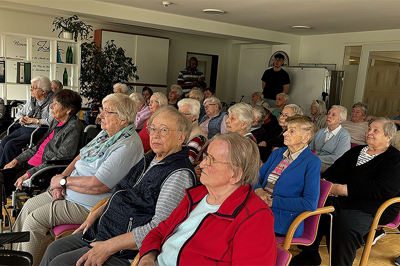 Ihr Angebot hatte einen interaktiven Charakter. Monika Görgen bezog die Anwesenden durch gezieltes Fragen und gezielte Impulse mit ein. Zum Abschluss übergab sie jeder Bewohnerin ein kleines Geschenk.
